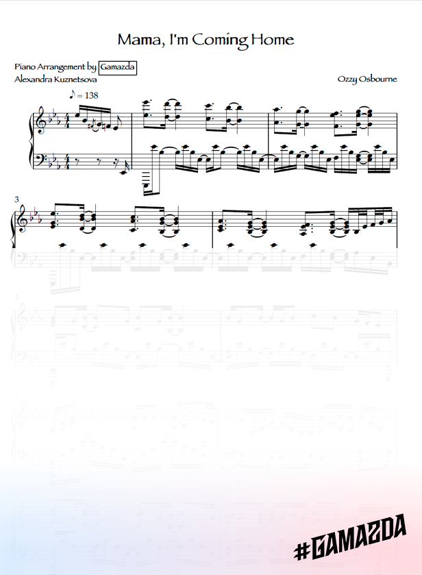 Ozzy Osbourne – Mama, I’m Coming Home (piano sheet music by Gamazda)